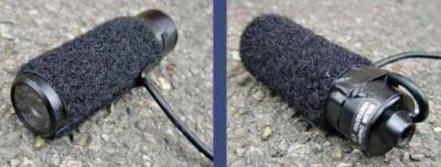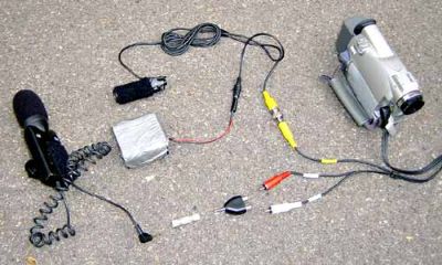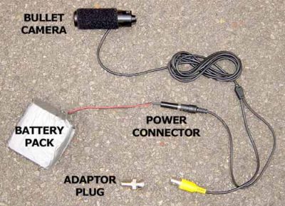External Microphone - using a bullet cam cancels out the camcorders internal mike, so an external mike is required. Jessops - costs about £25 and uses 1xAA battery.
