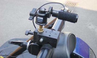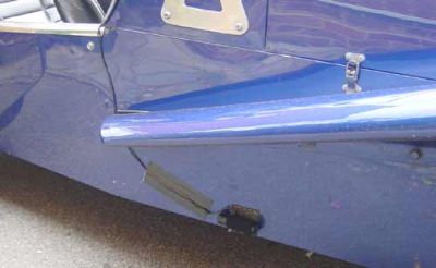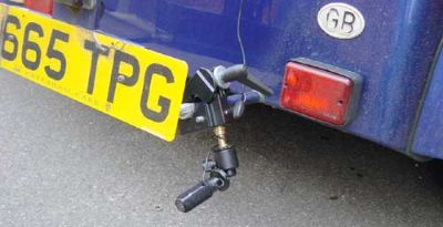 The small size of the bullet cam allows experimentation. Here we have velcroed the camera to a velcro patch stuck on the bodywork.