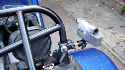 We have had great fun making videos of our exploits, mainly on track. We started off with a video camcorder fixed to the roll bar with a clamp, but have now moved on to using a bullet Clamp, which is far more versatile and more suitable for the job.