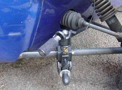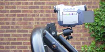 Before we got the bullet cam we just used a camcorder. as you can see from this image, the camcorder is very vulnerable, both to stones, and damage caused by excessive vibration, cornering forces etc. The surface area of support is very small, which places a lot of strain on the camera's case, and internals.