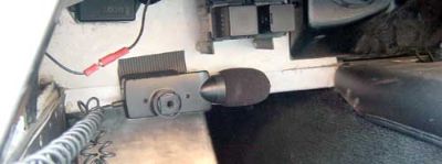 To avoid wind noise we attach the mike in the footwell, velcroed to the bulkhead. Remember to turn it on!