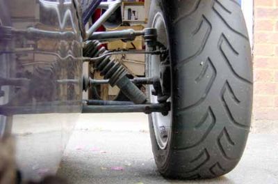View from the camera position shown above. You get great shots of the tire flexing on track, suspension moving and damper - damping.