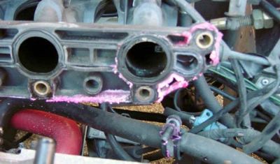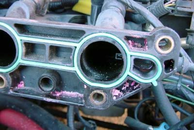 Looking back onto the inlet manifold itself, with the old black gasket still in place.