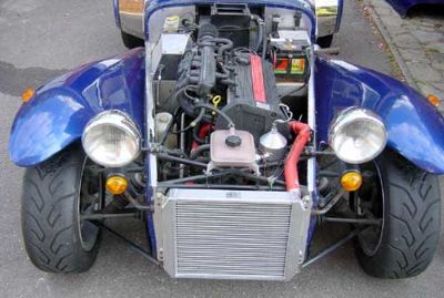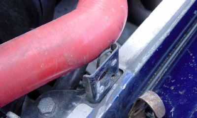 We fitted this aluminum radiator to replace the old original steel and copper one. The new radiator would give us much more efficient cooling, and indeed since fitting our water temperature has just about never got too high, even with hard track use. With the old radiator we would sometimes see the needle rise to about 90° plus on track.
