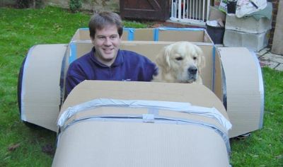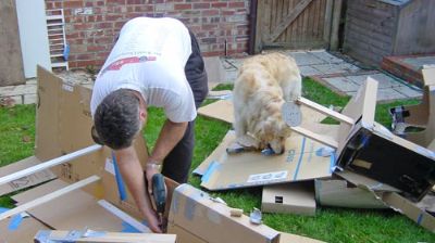 ...he had sat and watched us build this huge cardboard box - all ready for him to play with!! Once given the go ahead, there was no stopping him!!