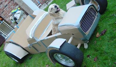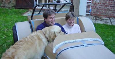 One last look at the beautiful nose cone and grill. In the background you can see Tessa either feeding Barney some more car, or trying to take it off him!!
