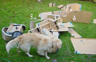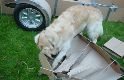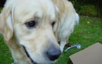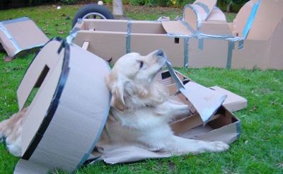 ....and that was it - Barney had been very patient, but fact is, he likes to have a good chew on a cardboard box...!