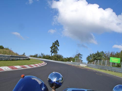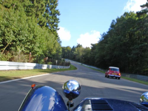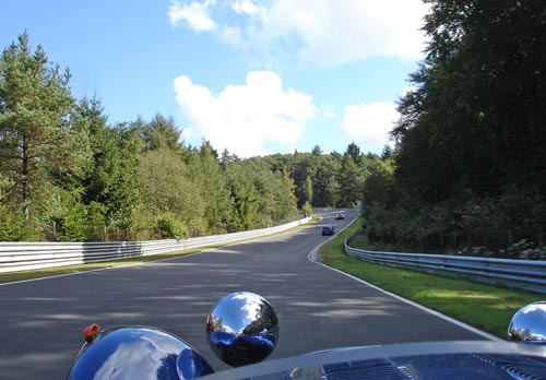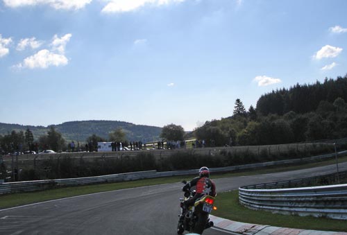 | Flat out for a little while before braking for the exit and back into the Grune Holle. |