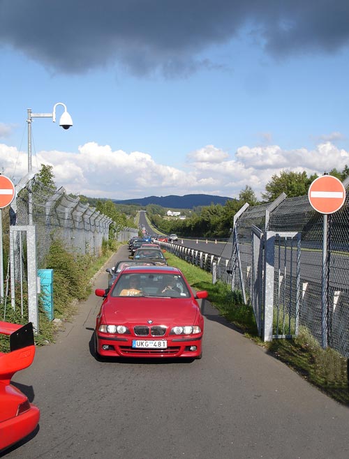 When you come off the roundabout, turn left or right into the car park. On your first visit get out and have a look around. There are always some nice machines to look at in the paddock on a public day. These will range from glistening Supercars - which will probably trundle round at a pretty safe speed - to local 'Ring specials - often stripped out Opels or Golfs, which will come absolutely flying past you as if you are standing still on the track!